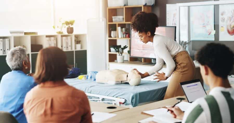 Most AEDs are semi-automated, requiring the user to physically press a shock button when needed. The process is simple, after placing the pads on the victim’s chest, wait for the AED voice prompts for directions. If your AED detects a shockable rhythm, it will power up to shock. Look for a flashing shock button, wait for the voice prompt’s directions, make sure no one is touching the victim, shout out “clear”, and press the flashing shock button. The user is required to continue pressing the shock button as needed, Your AED will continue to analyze the victim’s heart rhythm every two minutes.